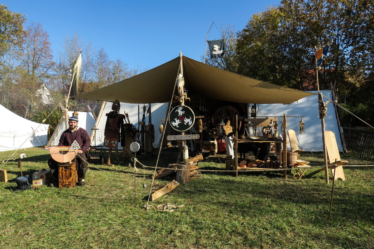 Die Lager der Ritter, Sippen, Reisenden und wilden Horden - hier erleben die Gäste Mittelalter pur und zum anfassen Die verschiedenen Lager zeigen damaliges Sippenleben, Handwerk, Kochen, Fechtkämpfe und vieles mehr.